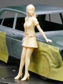 ガールズフィギュアはレジン製。美人さんです。一応、瞳のデカールもついてますが、今回は筆塗りでがんばってみようと思います。足と顔は固定、首元が結構隙間がありましたので、パテで埋めました。
