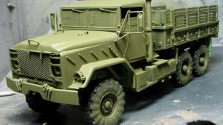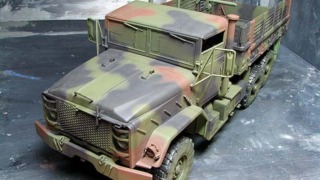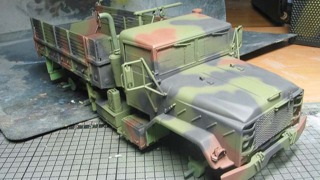 NATO迷彩のグリーン吹き付け完了。クレオスの3色セットを使いました。かなり明度を落として ...